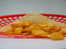 Alaska 3 oz halibut with englishchips with fries sauce, tartar sauce and remon