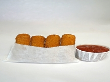 4 oz Chicken 2 pc with Fries and fries sauce and your choice One Ranch or BBQ or Honey Mustard or Ketchup